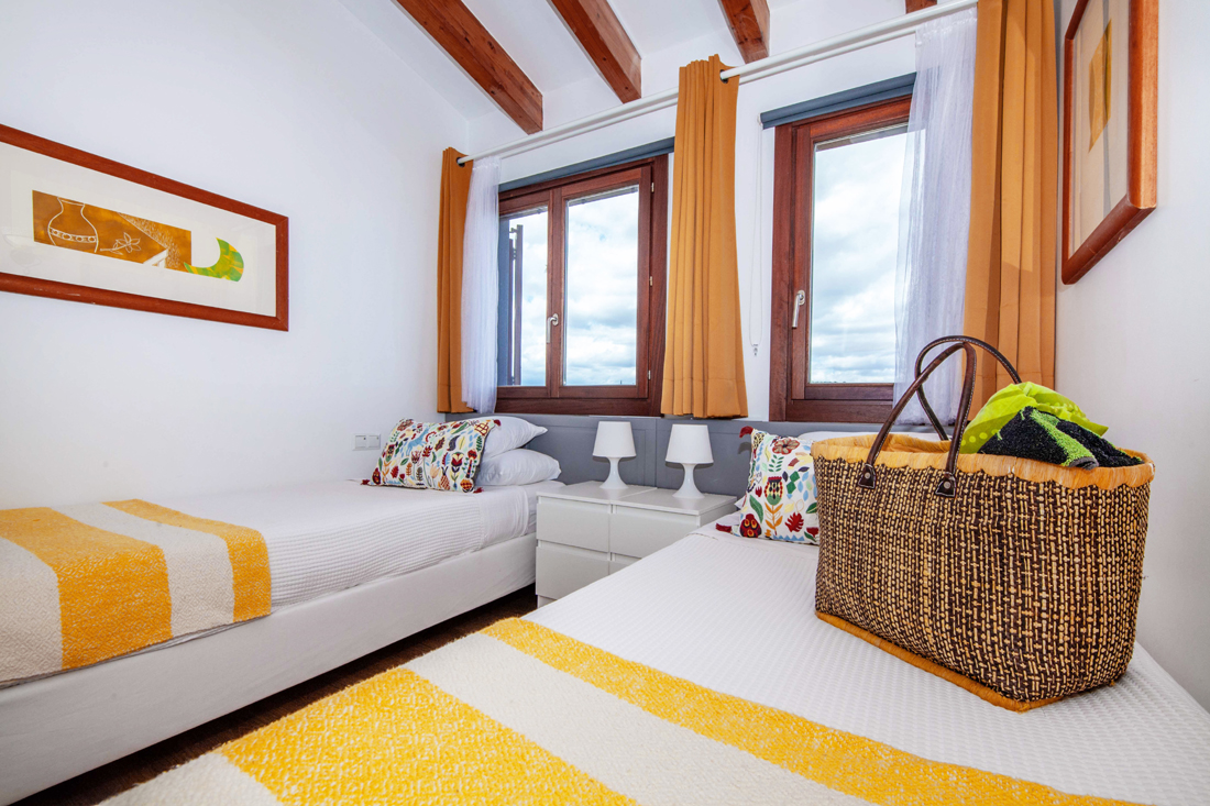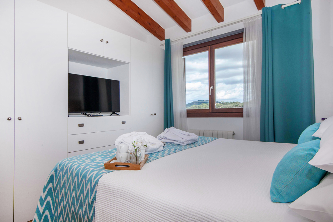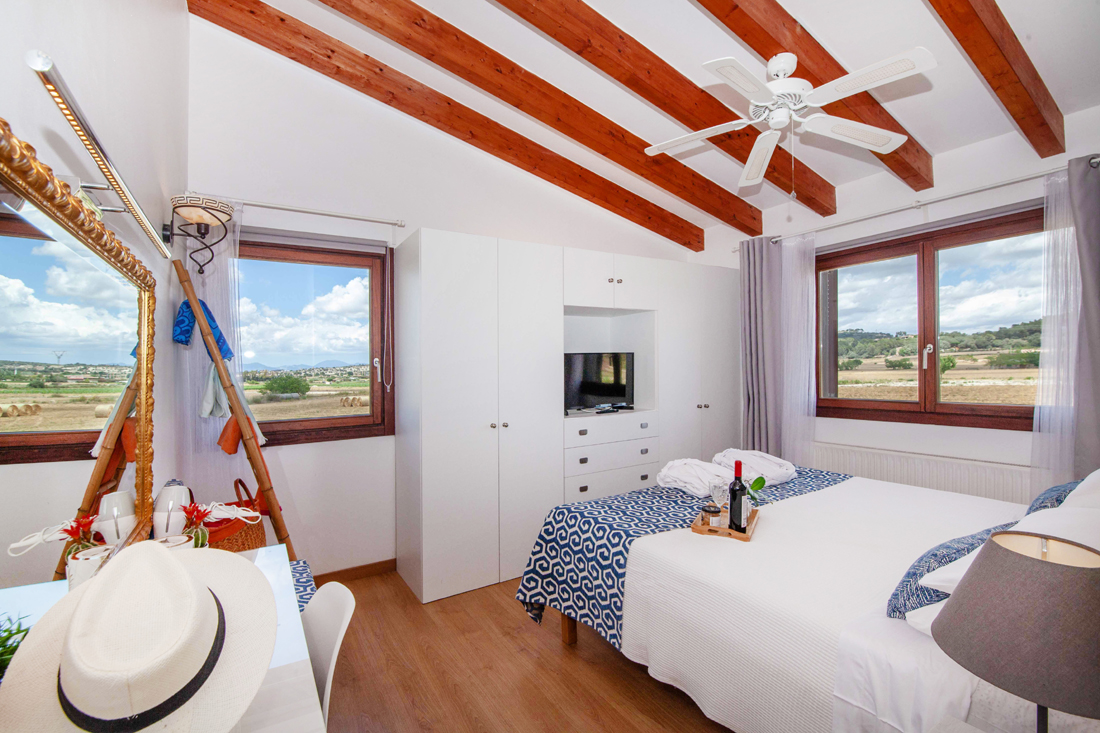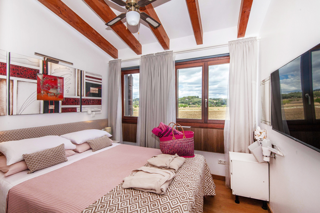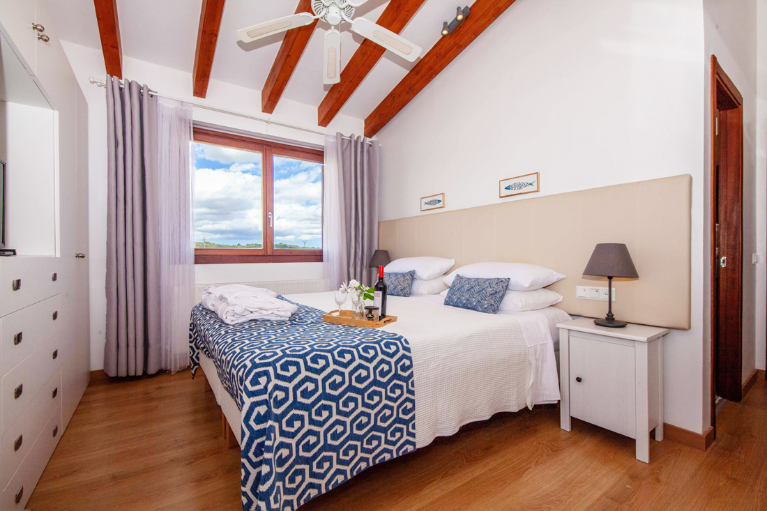 This is the second master bedroom, which is slightly larger due to the lack of an ensuite bath. Naturally, the room has air conditioning and heating, and there is ample wardrobe space, with television including English and German HD Satellite TV, with Netflix in English, German, Spanish, and French. Warm, pleasing lighting and large, quiet ceiling fans are controlled at bedside. Also includes a generous makeup desk with large mirror and lighting, and a hairdryer.