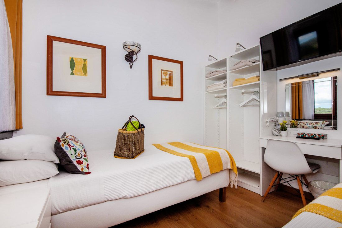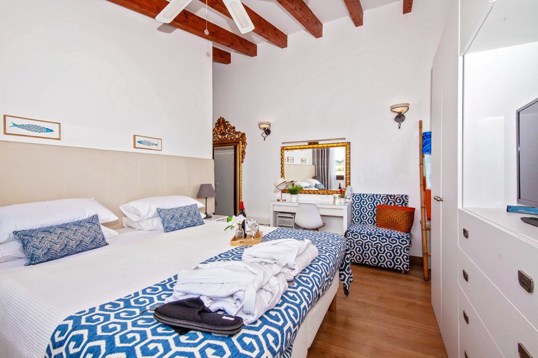 This is a smaller room, but features a 160cm double bed, ideal for singles or couples. Naturally, the room has air conditioning and heating, with 43" smart UHD television including English and German HD Satellite TV, with Netflix in English, German, Spanish, and French. Warm, pleasing lighting and large, quiet ceiling fans are controlled at bedside.