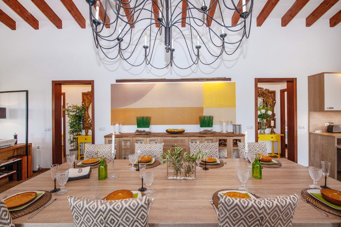 The dedicated dining area is very spacious, pleasingly lit, and features a large table comfortably seating 8 persons with additional space for infant high chairs, with a large chandelier overhead. Additionally, a sideboard with all the necessary dining accessories, including wine glasses, serviettes, and other special dining accessories.